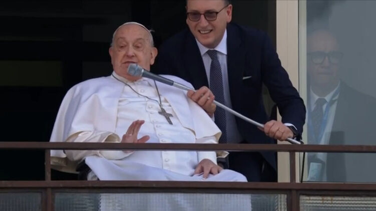 Главу католицької церкви викотили на колясці на балкон, звідки Франциск зміг сказати кілька слів парафіянам, які зібралися перед будівлею.