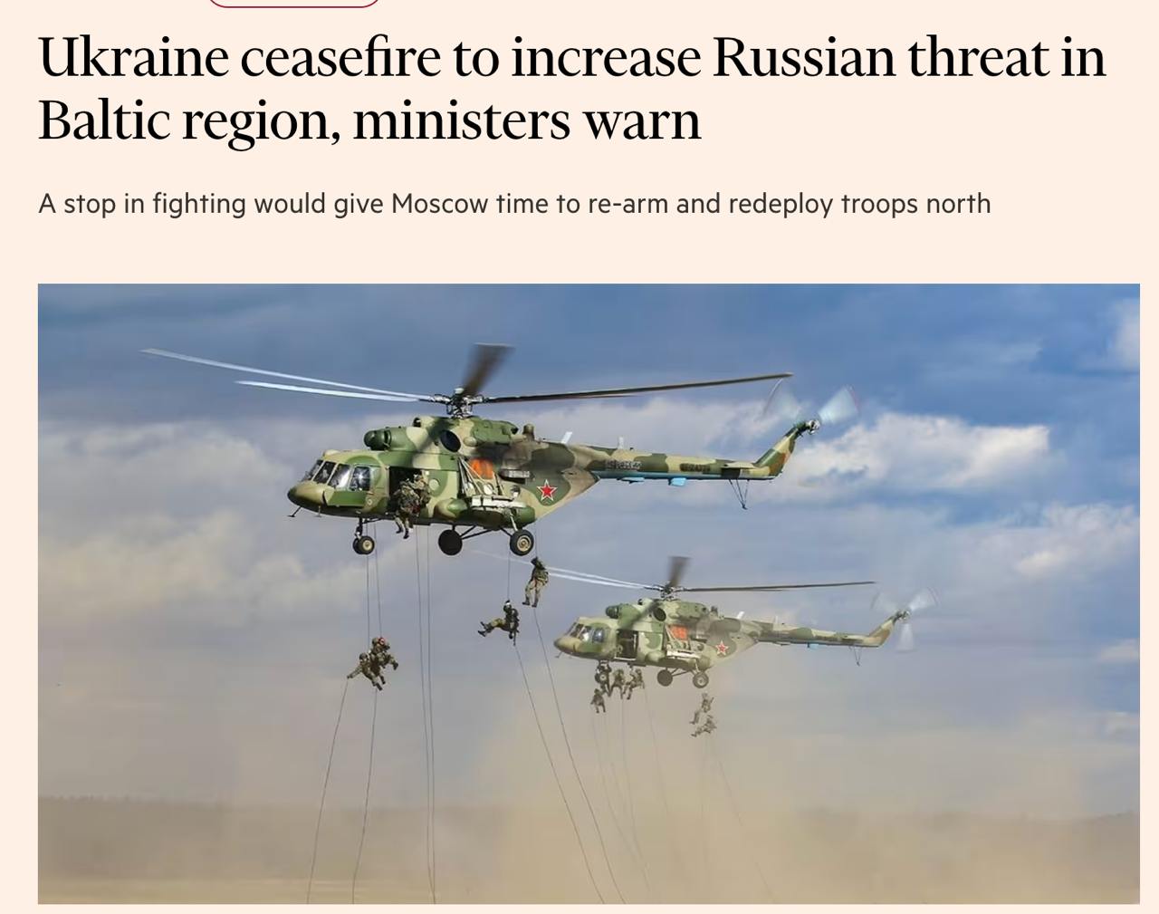 Міністри заявляють, що зупинка війни в Україні "різко посилить загрозу безпеці країн Балтії, оскільки Росія продовжить реалізацію планів щодо переозброєння та передислокації військ на північно-східний фланг НАТО".