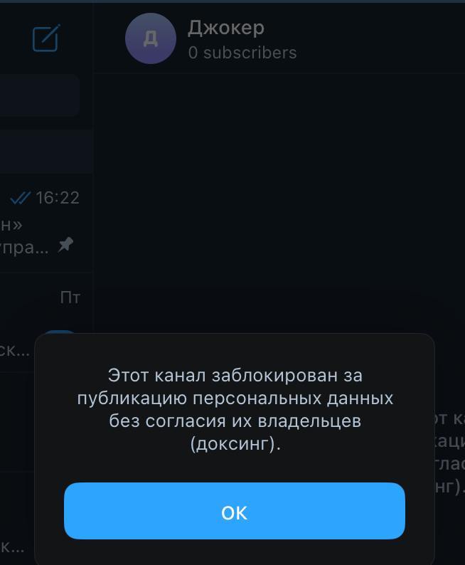 Телеграм-канал "Джокер" заблокували майже відразу після публікації особистих даних дніпропетровського бізнесмена Валерія Шамотія, ресторан "Бартоломео" якого згорів від удару "Шахедом".