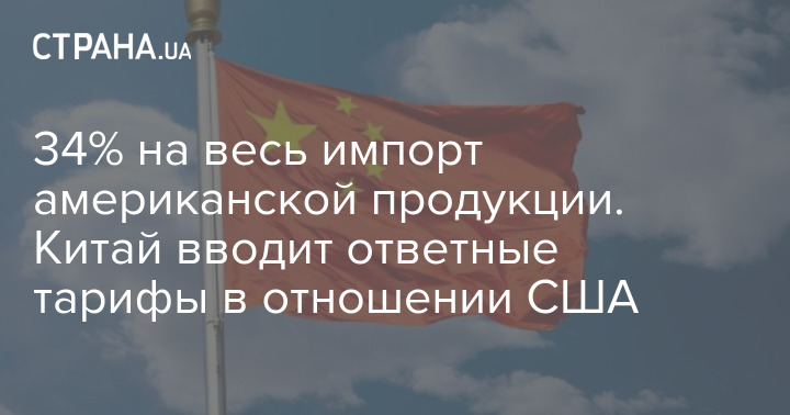 34% на весь імпорт американської продукції. Китай вводить тарифи у відповідь США
