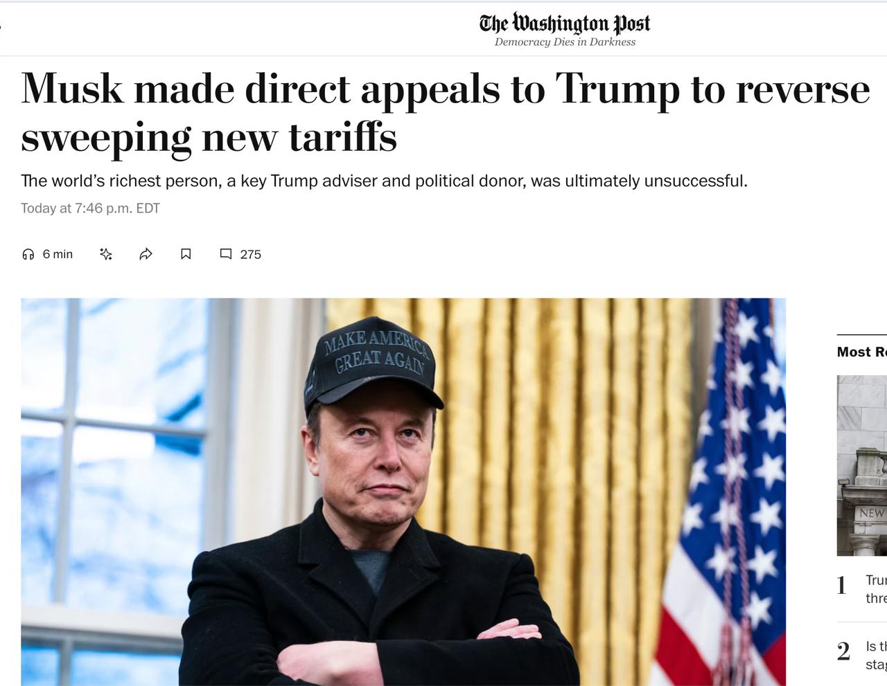Маск закликав Трампа скасувати взаємне мито - The Washington Post