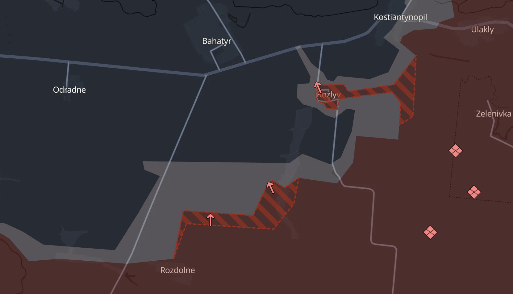 Також РФ просунулась на південь від Богатиря в Роздільного.