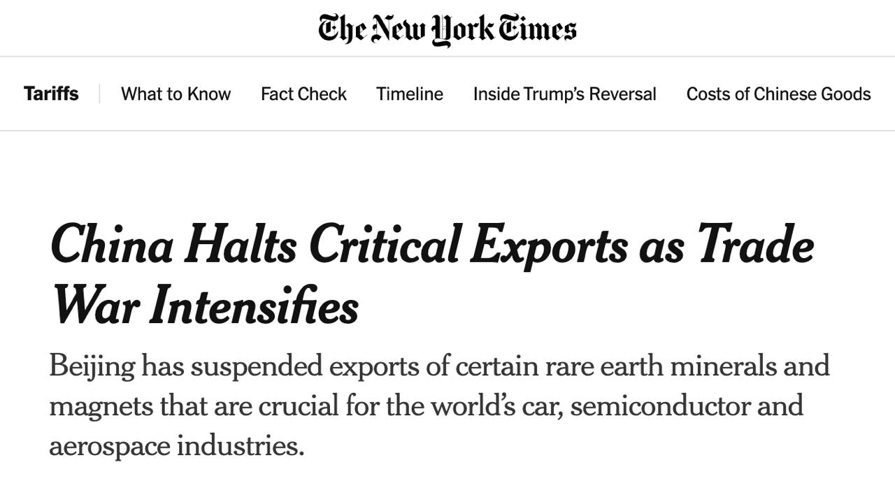 Обмеження поставок для компаній та військових підрядників по всьому світу були введені ще 4 квітня доти, доки китайський уряд не розробить нову систему регулювання експорту. Воно може назавжди скасувати постачання певним компаніям, включаючи американських військових підрядників.