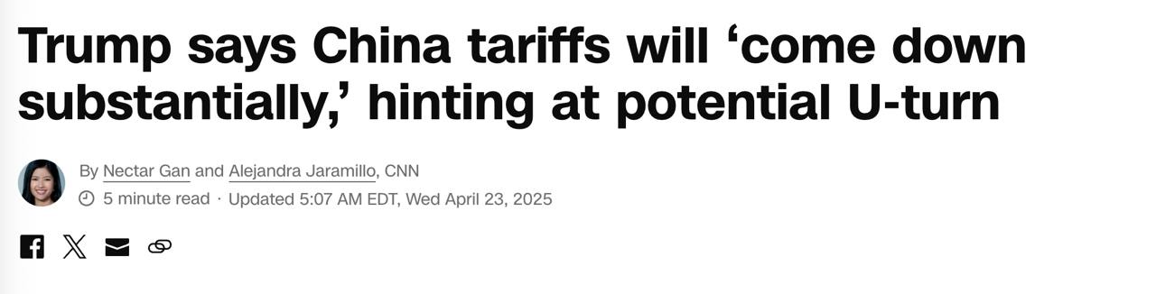 Таким чином, американський лідер в Овальному кабінеті прокоментував висловлювання міністра фінансів США Скотта Бессента про високі тарифні ставки між США і Китаєм, які фактично наклали ембарго на торгівлю між економіками, повідомляє CNN.