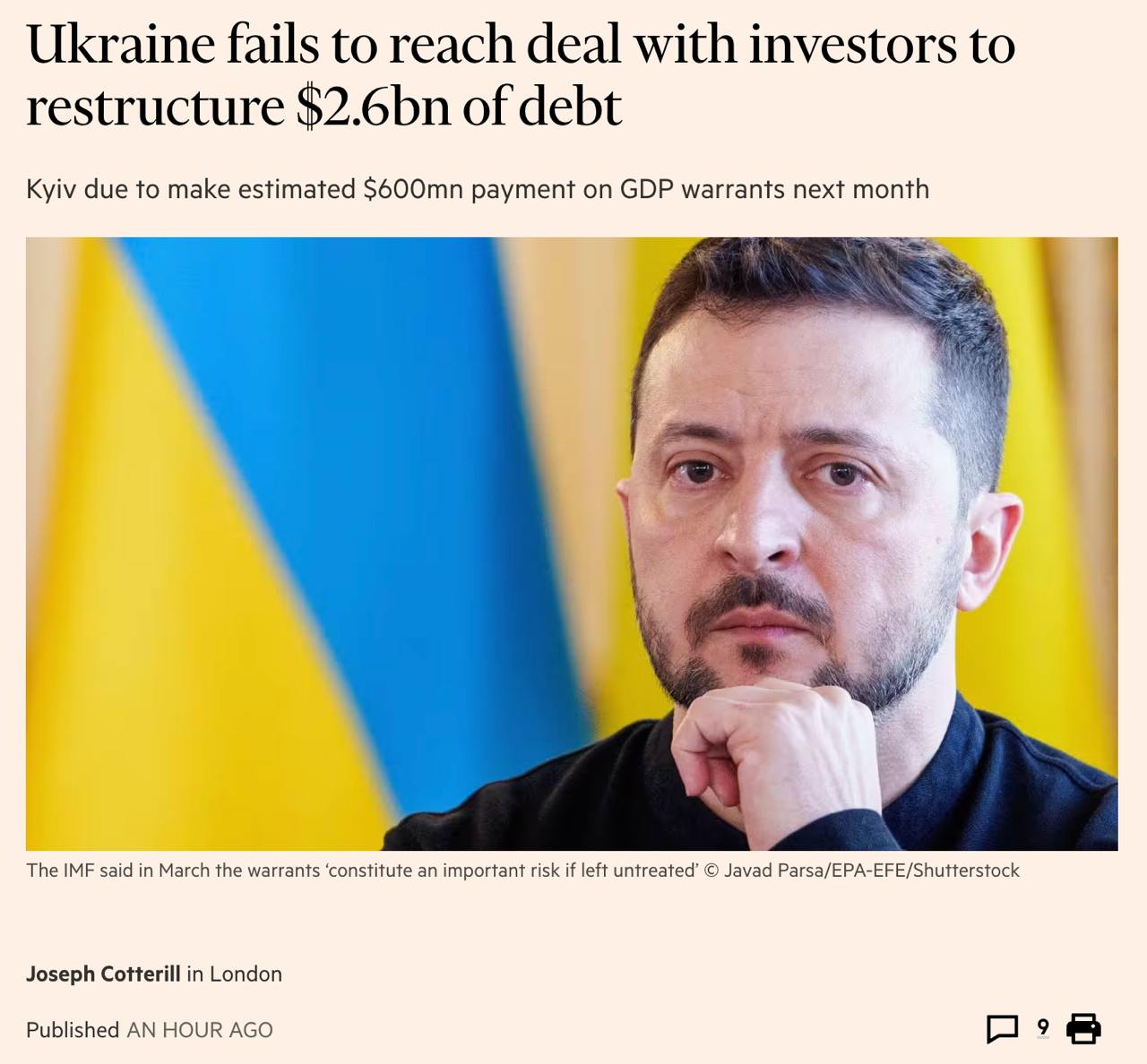 Незабаром після публікації Мінфін України підтвердив, що не зміг домовитися з інвесторами про виплату 600 млн. дол. боргів у травні.