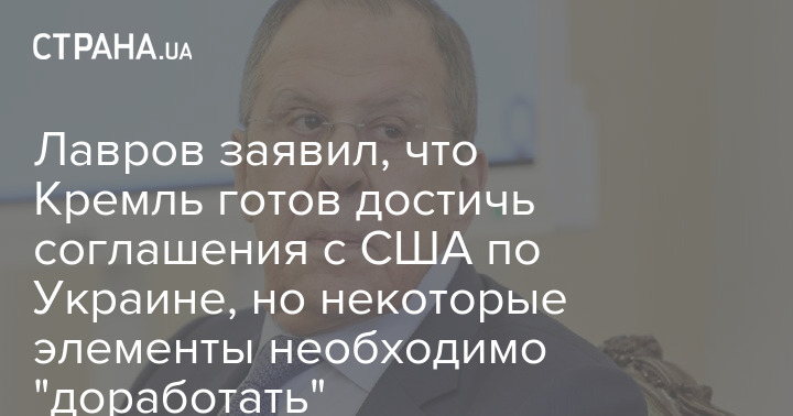 Міністр закордонних справ РФ Сергій Лавров заявив, що Кремль готовий досягти угоди зі США щодо України. При цьому, за його словами, деякі елементи необхідно "доопрацювати".