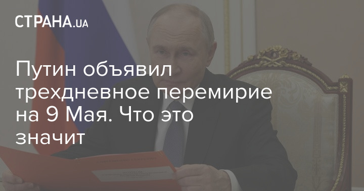 Президент РФ Володимир Путін заявив, що Росія оголошує одностороннє перемир'я у дні 80-ї річниці перемоги у Другій світовій війні - з нуля годинника з 7 на 8 травня до нуля годинника з 10 на 11 травня.