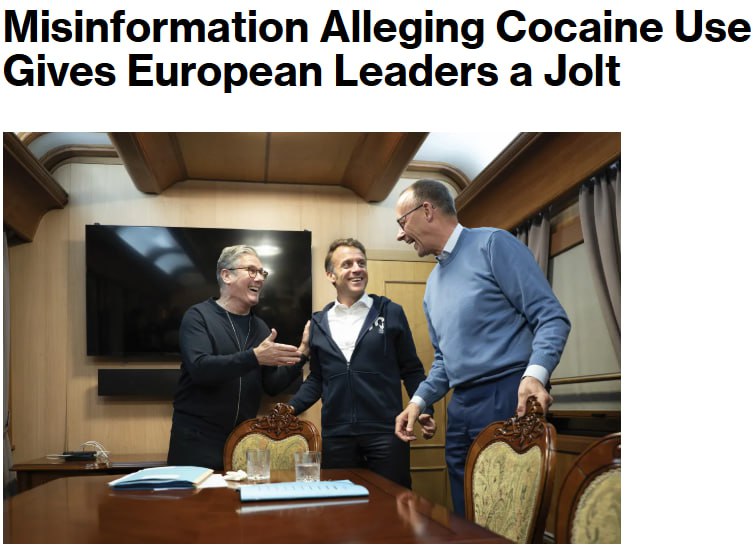Нагадаємо, на відео за появи журналістів Макрон прибирає в кишеню блискучий предмет, схожий на пакетик з білим порошком, а Мерц - предмет, схожий на мірну ложечку для кокаїну. Після поширення цих кадрів у МЗС РФ фактично звинуватив європейських політиків у вживанні наркотиків.