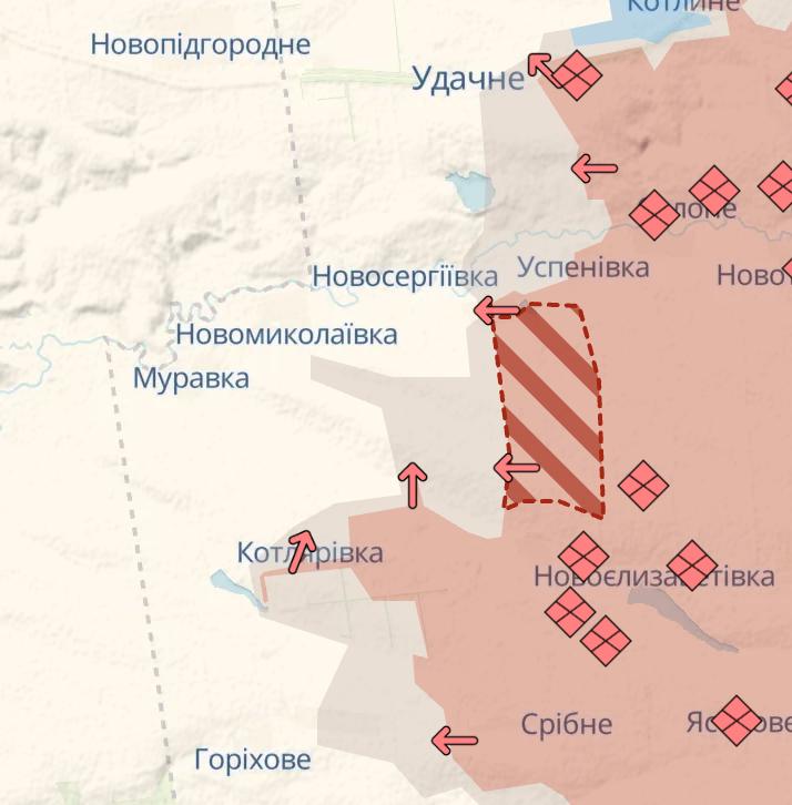 Також росіяни суттєво просунулися в Новоолександрівці, що біля кордону з Дніпропетровською областю, на південний захід від Покровська.