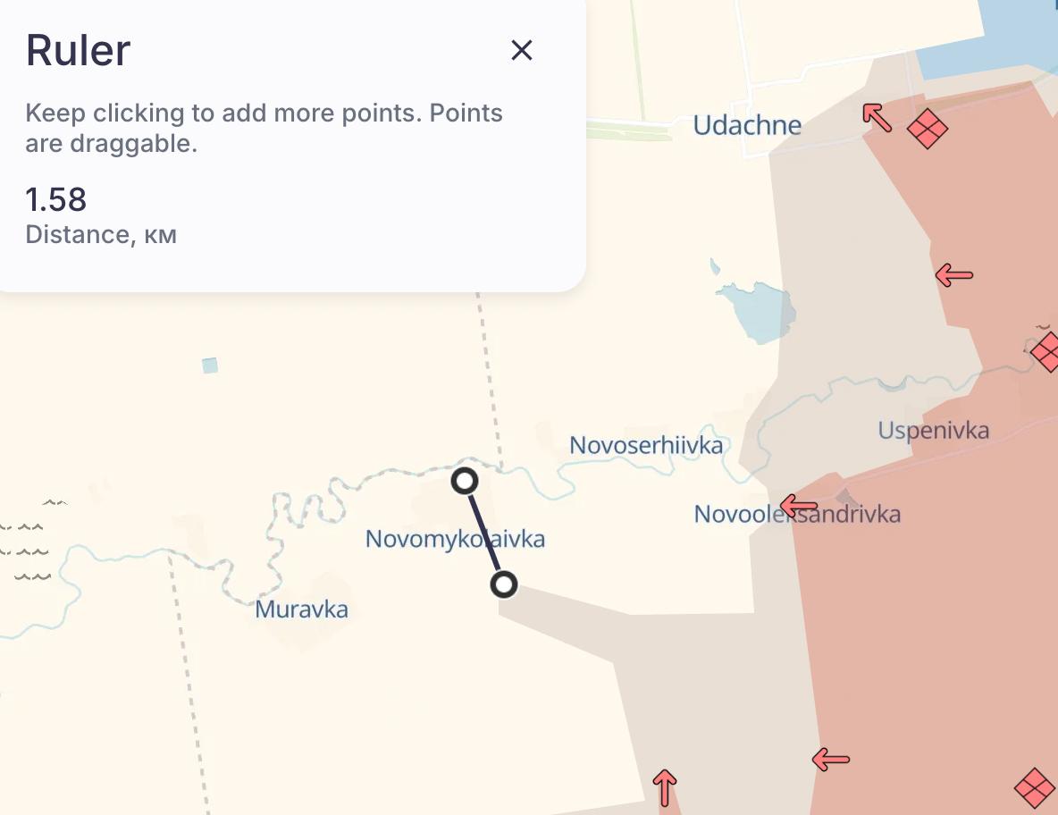При цьому паблік Deep State сьогодні повідомляв про просування лінії фронту до Новомиколаївки, звідки до кордону близько півтора кілометра.