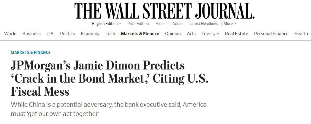 США можуть зіткнутися з проблемами на ринку облігацій, якщо не вирішать питання з держборгом - гендиректор JPMorgan
