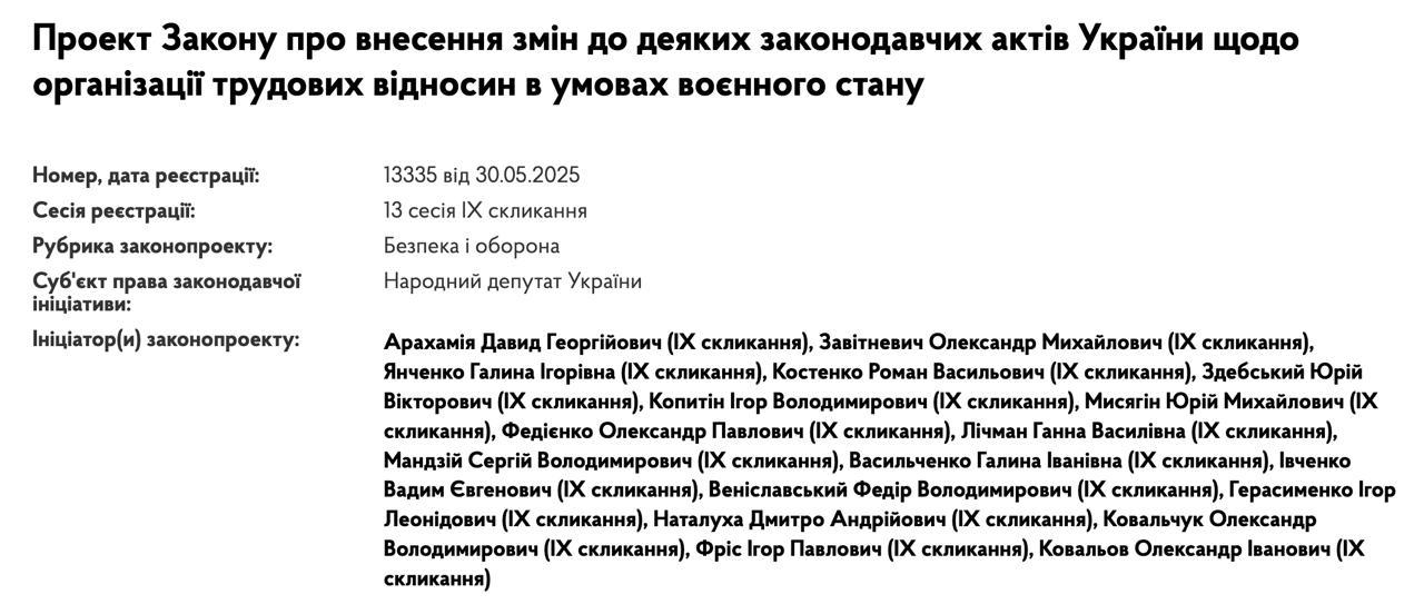Відповідний законопроєкт №13335 внесла група депутатів. На чолі з головою фракції "Слуга народу" Давидом Арахамією, а також головою оборонного комітету Олександром Завітневичем.