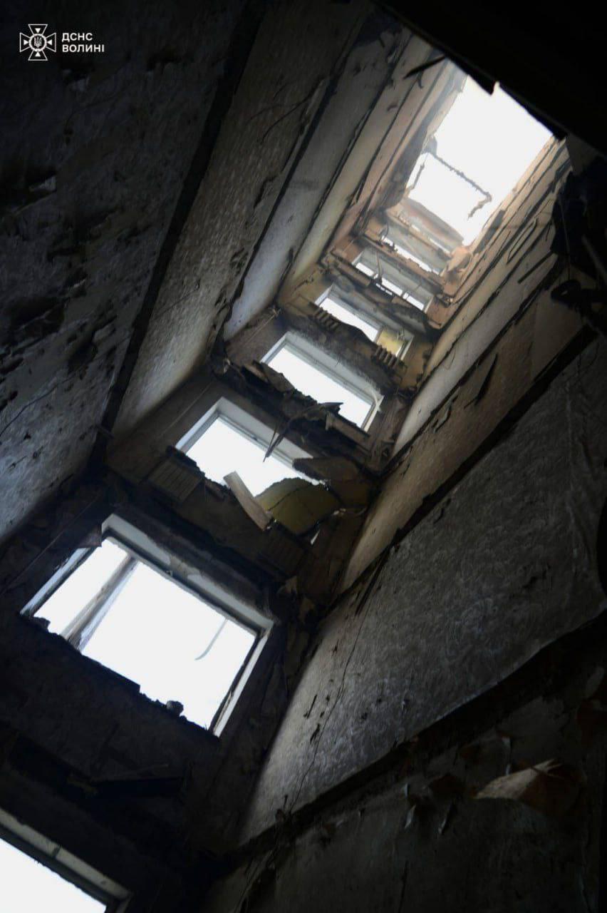07:46 Відео ракетного удару по Луцьку, де постраждав багатоквартирний будинок.