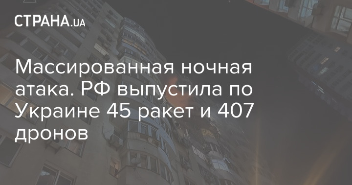 Масована нічна атака. РФ випустила по Україні 45 ракет і 407 дронів