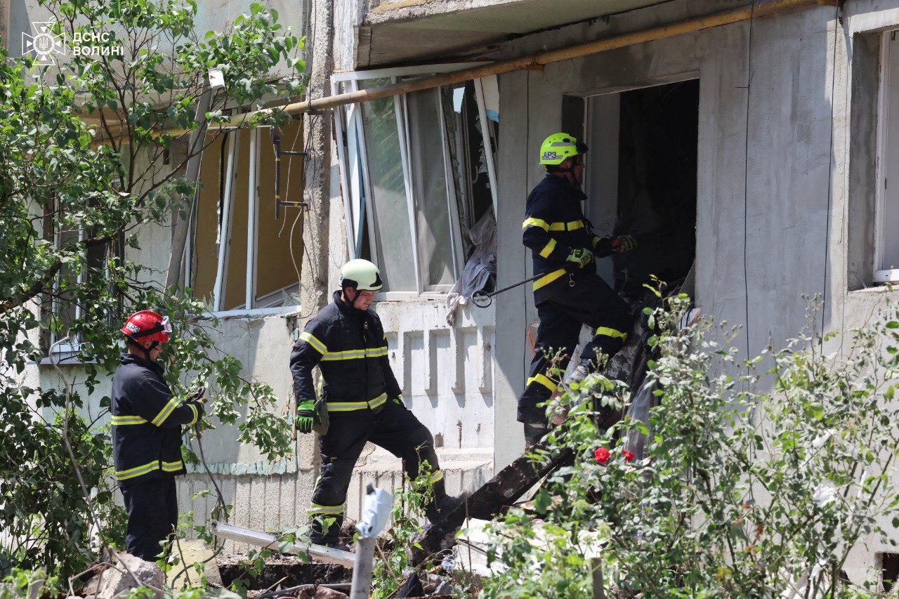 Наслідки російської атаки у Луцьку. Фото: ДСНС