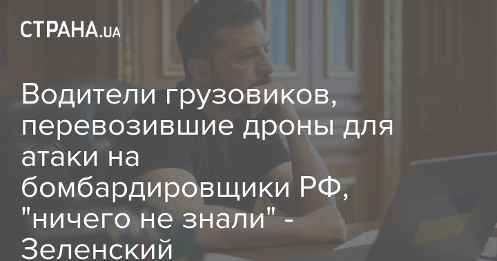 Водії вантажівок, які перевозили дрони для атаки на бомбардувальники РФ, "нічого не знали" - Зеленський