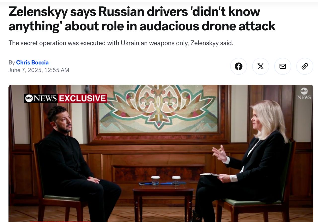 При цьому західні ЗМІ пишуть, що президент Сполучених Штатів Дональд Трамп незадоволений Зеленським через атаку на аеродроми, а трампісти відкрито критикують українську сторону за ескалацію війни.