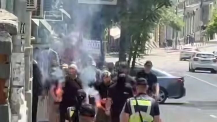 До місця проведення заходу вже підійшла колона націоналістів, в руках у яких були підпалені смолоскипи.
