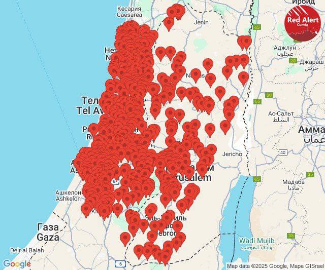 Карта повітряної тривоги в Ізраїлі.