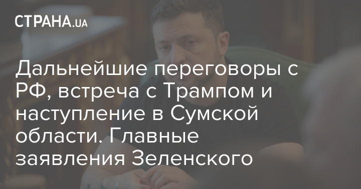 Подальші переговори з РФ, зустріч із Трампом та наступ у Сумській області. Головні заяви Зеленського