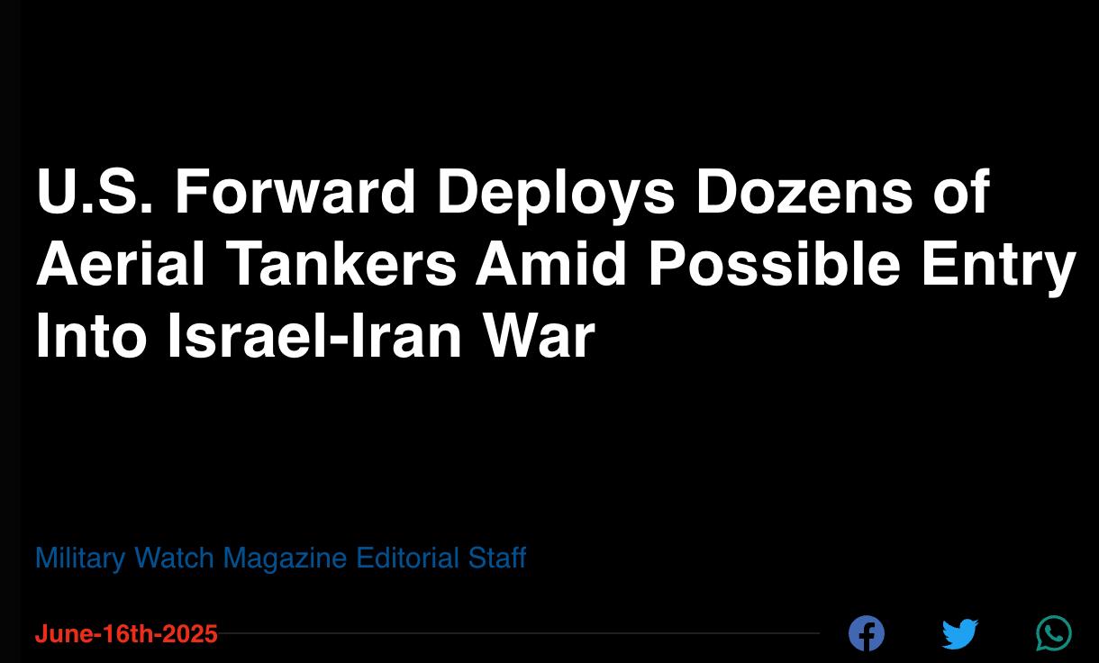 9.40 США перекидають свої літаки-заправники через Атлантичний океан у "безпрецедентно масовому" масштабі, можливо, для участі у війні Ізраїлю та Ірану, повідомляє Military Watch Magazine.