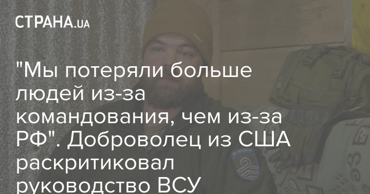 "Ми втратили більше людей через командування, ніж через РФ". Доброволець із США розкритикував керівництво ВСУ