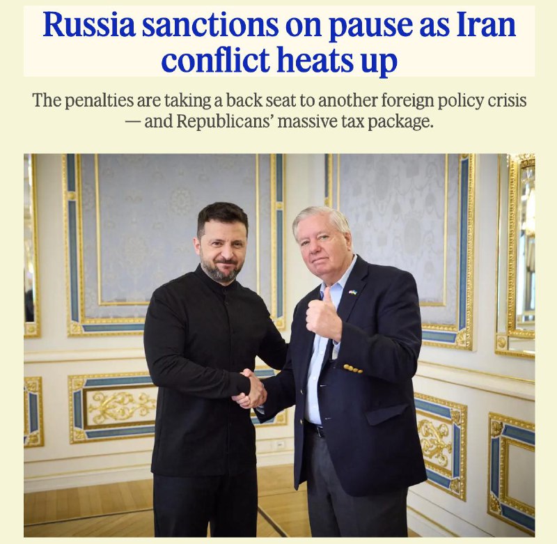 Як зазначає видання Semafor, це відбувається на тлі загострення конфлікту між Ізраїлем та Іраном. За словами автора законопроекту сенатора Ліндсі Грема, "сенату доведеться трохи почекати" з його ухваленням. Він додав, що ситуація з Іраном зараз у центрі уваги: "Це не означає, що я забув про Росію чи Україну. Зовсім ні. Але Іран зараз у фокусі".