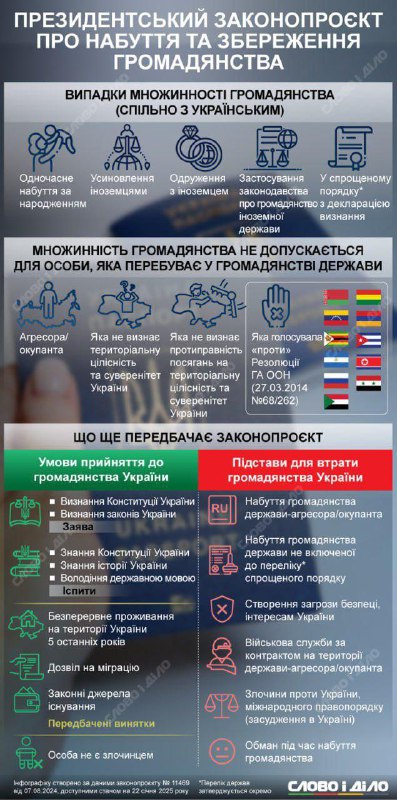 Окремо буде затверджено ще один список країн, громадянство яких також спричинить позбавлення громадянства України.