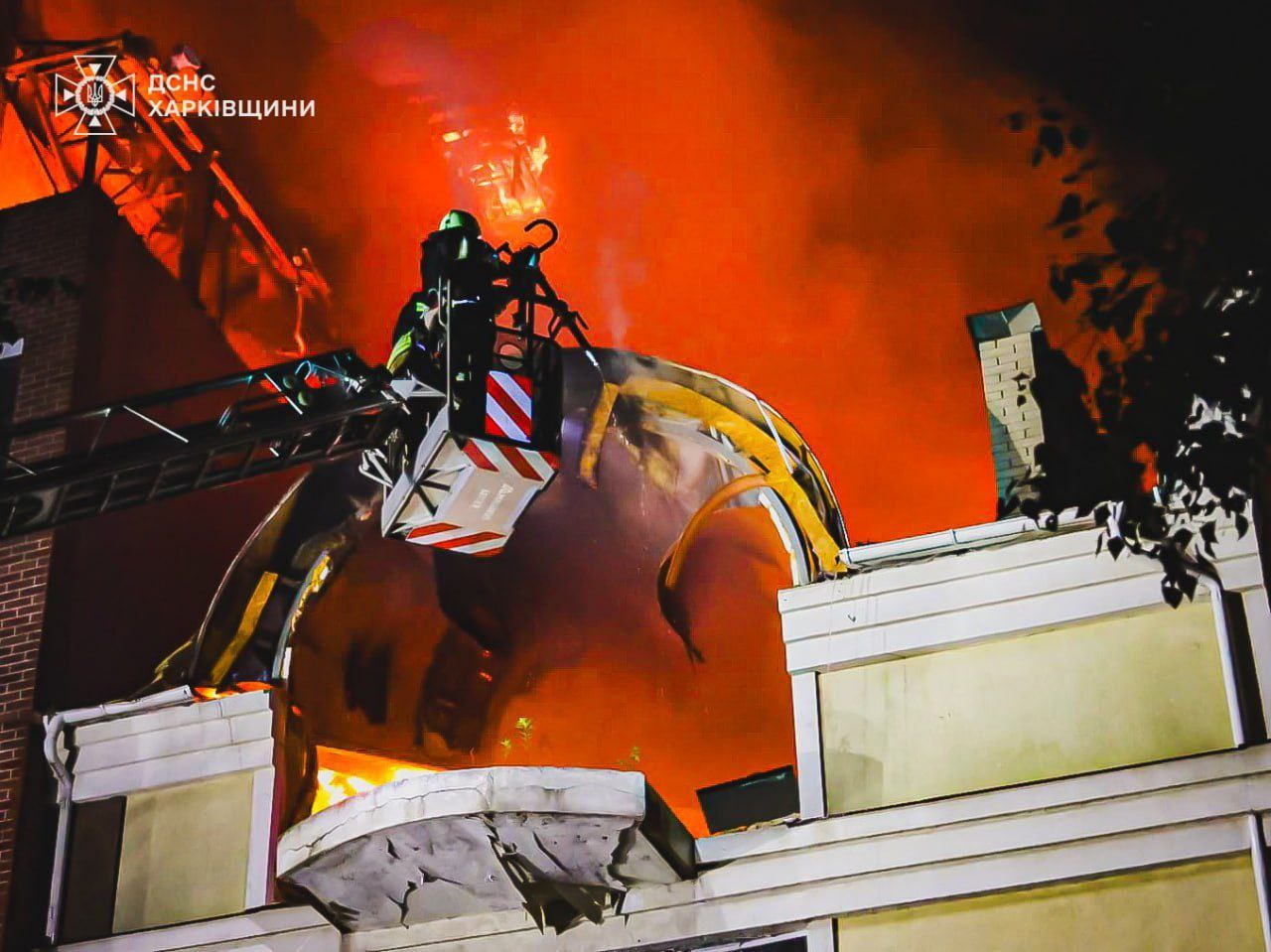 Зафіксовано понад 10 влучень, виникли масштабні пожежі. Зайнявся 4-поверховий житловий будинок.