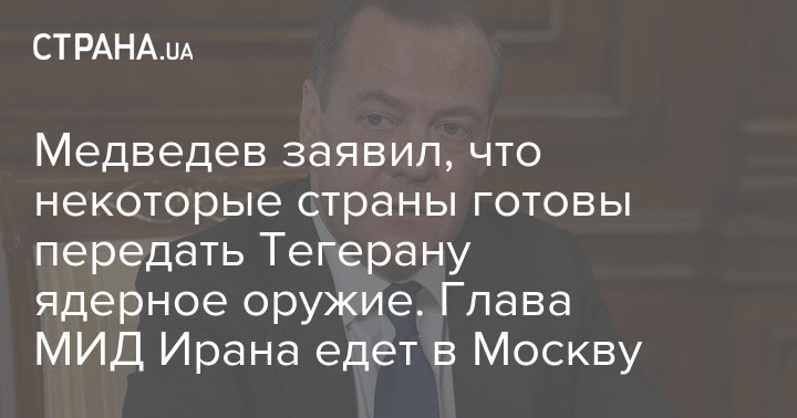 Медведєв заявив, що деякі країни готові передати Тегерану ядерну зброю. Глава МЗС Ірану їде до Москви
