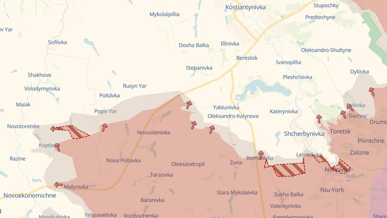 Також є низка поступів на південь від Костянтинівки - по лінії Романівка-Леонідівка-Нелипівка та під Новоторецьким.