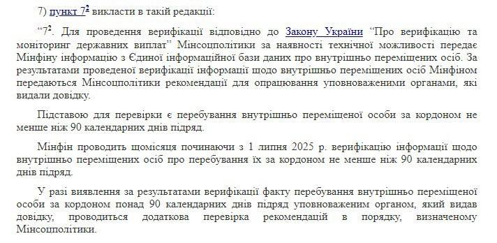 У разі від'їзду за кордон на період більше 90 днів без поважної причини статус ВПО та виплати (для тих, хто має на них право) можуть скасувати.