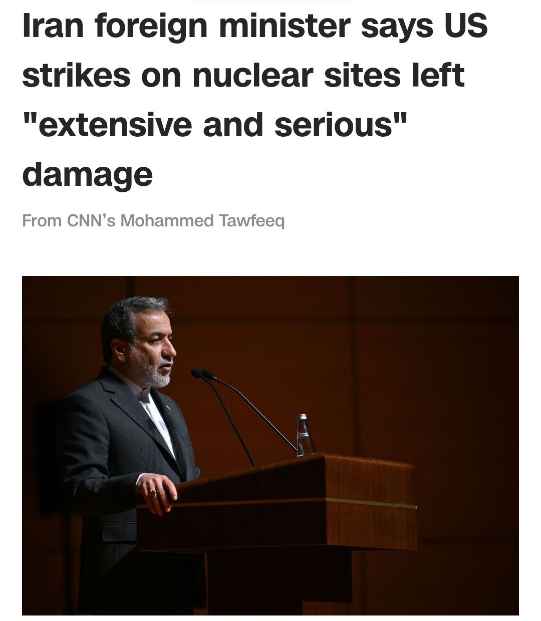 Удари Ізраїлю та США завдали серйозно пошкодили ядерні об'єкти Ірану. Про це заявив міністр закордонних справ Аббас Аракчі.