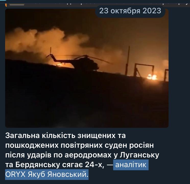 Однак цей ролик старий і справді знятий у жовтні 2023 року. На кадрах, як тоді писали ЗМІ – наслідки удару ракет ATACMS по російських вертольотах у Бердянську.
