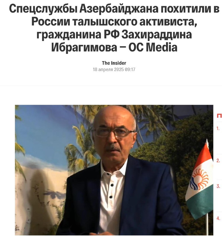 Тим часом у російських телеграм-каналах обговорюють нову версію причин конфлікту між РФ та Азербайджаном – зникнення в Єкатеринбурзі одного з найвідоміших активістів талиського національного руху Захіраддіна Ібрагімова. Талиші – найбільша національна меншість Азербайджану, яка потребує автономії, в якій Баку відмовляє. Ібрагімов звинувачував владу Азербайджану у переслідуванні талиських активістів, заснував організацію на їх захист та вів відповідний Ютуб-канал.