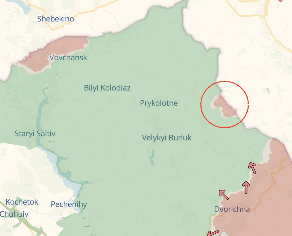 На південний захід від цієї ділянки, за 15 кілометрів знаходиться Великий Бурлук, який є важливим логістичним пунктом для постачання угруповання ЗСУ під Вовчанськом. На північний захід - сам Вовчанськ (де теорії можна вийти в тил українським військам), а на південний схід - район Дворічної, де також наступають росіяни.