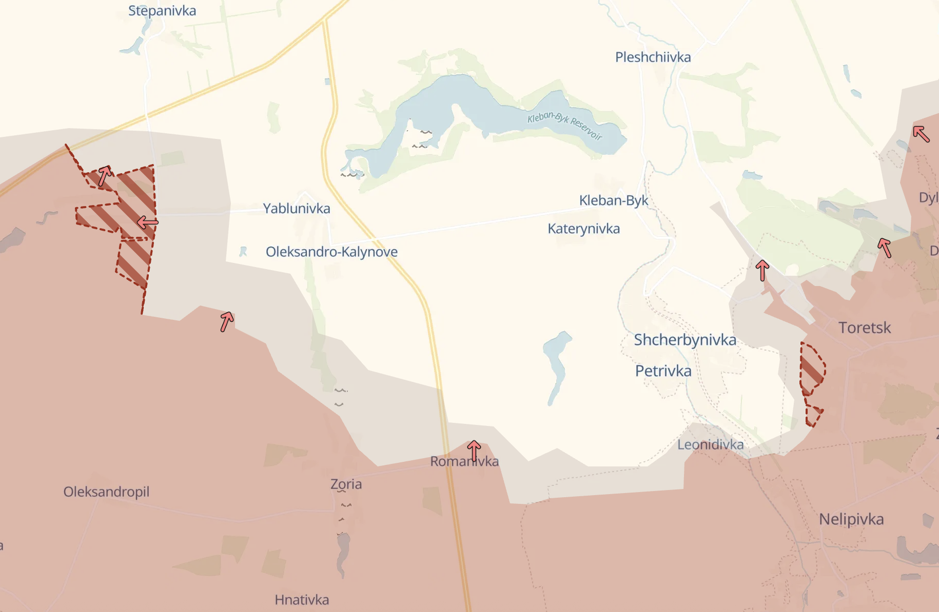 Крім того росіяни зайняли нові позиції на південь від Костянтинівки - під Яблонівкою та Торецьком.