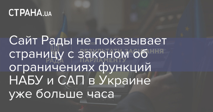 Сайт Ради не показує сторінку із законом про обмеження функцій НАБУ та САП в Україні вже більше години
