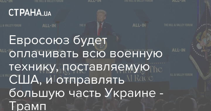 "Ми щойно уклали угоду з Європейським союзом, за якою вони будуть оплачувати 100% вартості всієї військової техніки, що постачається США. Вони отримають її у нас, потім розподілять, і більшість піде в Україну. Давненько ви не чули таких слів. Ми вклали $350 мільярдів, але тепер ми відправляємо техніку до Європи, а Європа платить. Вони були просто чудові”, - заявив він.