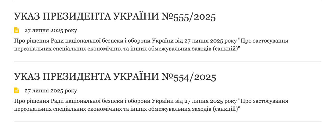 Президент України Володимир Зеленський запровадив нові санкції, підписавши два рішення РНБО. Відповідні укази №554/2025 та №555/2025 з'явилися на сайті Офісу Президента.
