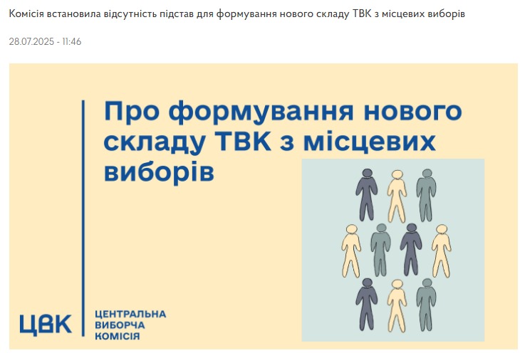 З огляду на це комісія констатувала відсутність підстав для внесення подань кандидатур до складу обласних, районних, міських, сільських, селищних територіальних виборчих комісій, а також для формування Центральною виборчою комісією, районними, міськими територіальними виборчими комісіями нового складу територіальних виборчих комісій на різних рівнях.