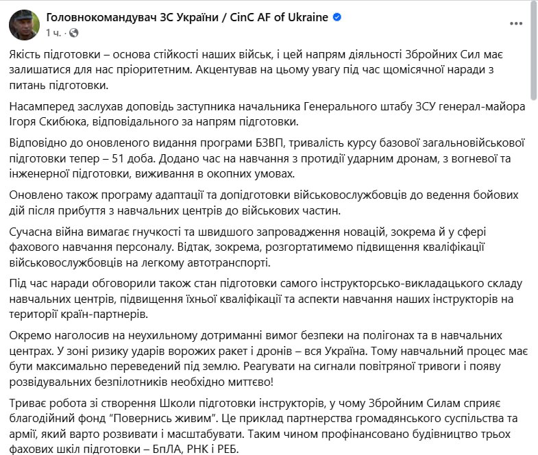 Окремо Сирський зазначив неухильне дотримання вимог безпеки на полігонах та у навчальних центрах.