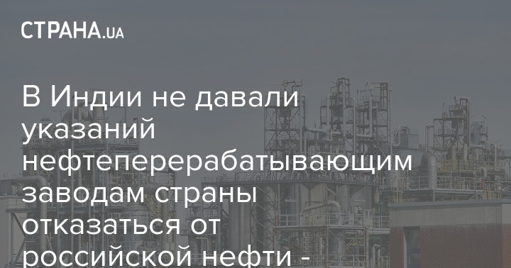 За даними видання Bloomberg, в Індії не давали вказівок нафтопереробним заводам країни відмовитись від російської нафти.