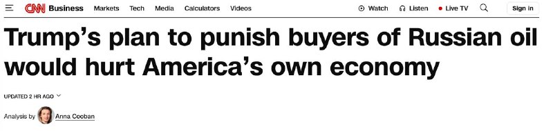 100-відсоткові вторинні мита, якими президент США Дональд Трамп погрожував Росії, завдадуть збитків самим США і будуть сприйняті як блеф. Найефективніше будуть санкції у розмірі 10-30%.