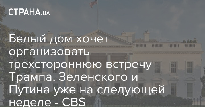 Білий дім має намір організувати тристоронню зустріч президентів США, України та Росії Дональда Трампа, Володимира Зеленського та Володимира Путіна наприкінці наступного тижня.