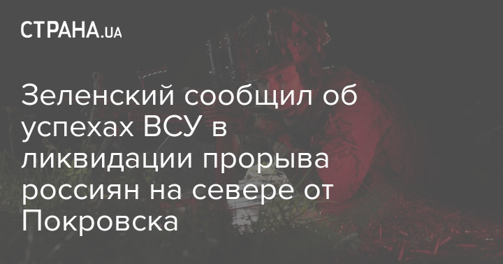 Зеленський повідомив про успіхи ЗСУ у ліквідації прориву росіян на півночі від Покровська