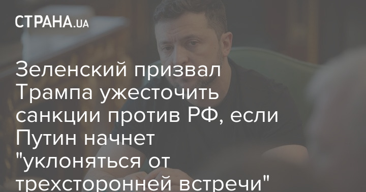 Президент України Володимир Зеленський закликав американського голову Дональда Трампа посилити санкції проти Росії, якщо Володимир Путін почне "ухилятися від тристоронньої зустрічі".