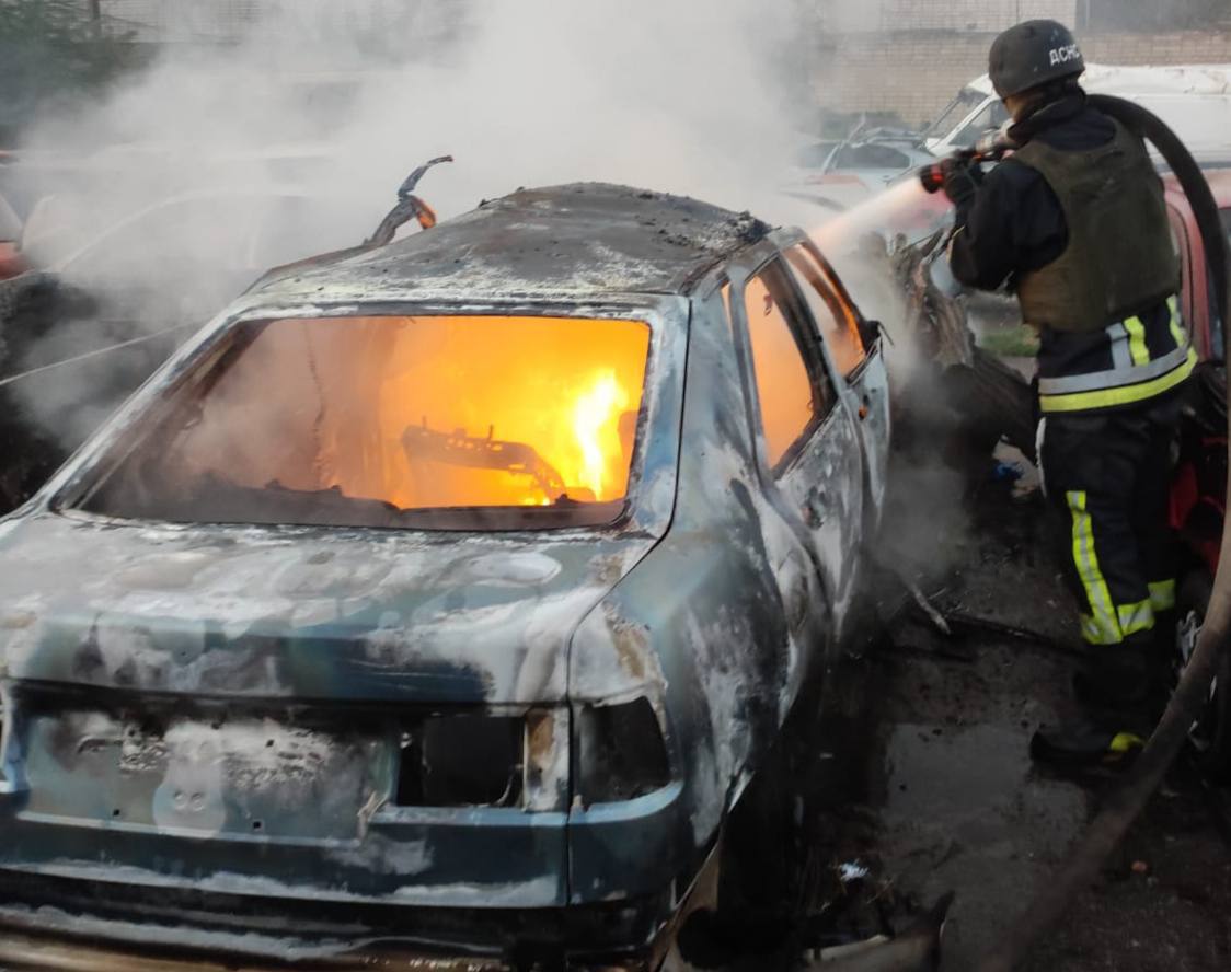 У Нікопольському районі пошкоджено кілька автомобілів, одну машину знищено.