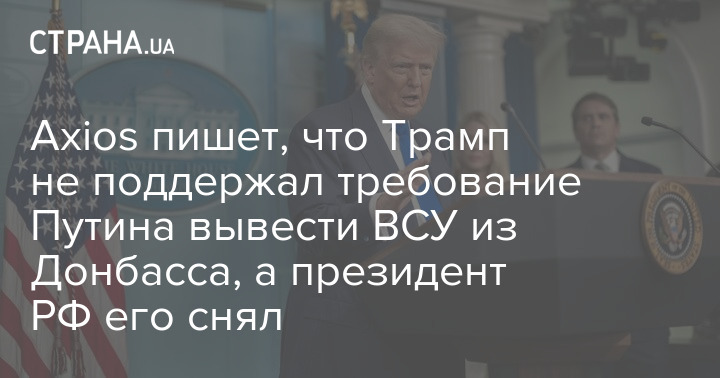 Axios пише, що Трамп не підтримав вимогу Путіна вивести ЗСУ з Донбасу, а президент РФ його зняв