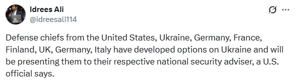 Раніше сайт Politico повідомляв, що проект гарантій представлять протягом тижня. Європейські союзники пришвидшують свої консультації.